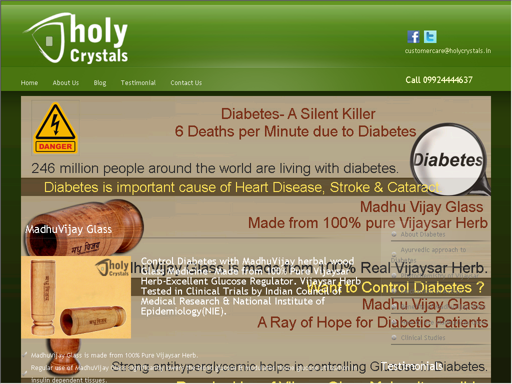 Madhuvijay Glass is made of 100% pure Vijaysar Herb. Vijaysar herb is clinically proven herb used in India since centuries to control Blood Sugar in Diabetes. In ancient times in India, people having diabetes (Madhumeh) used glass made of Vijaysar Herb and drink aqueous of this glass to cure diabetes. We have made this glass available to people across the world suffering from diabetes. This glass is proved to be excellent glucose regulator in Diabetes patients. Therefore it reduces the requirement of allopathic doses and save the patients from side effects. visit our website for further information on Ayurveda and diabetes, diabetes cure etc.