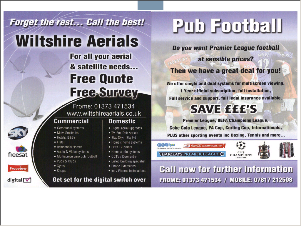 Wiltshire Aerials is a small family business based in Frome covering Wiltshire, Somerset, bath and Bristol. We are very experienced in the installation of digital aerials and satellite systems.