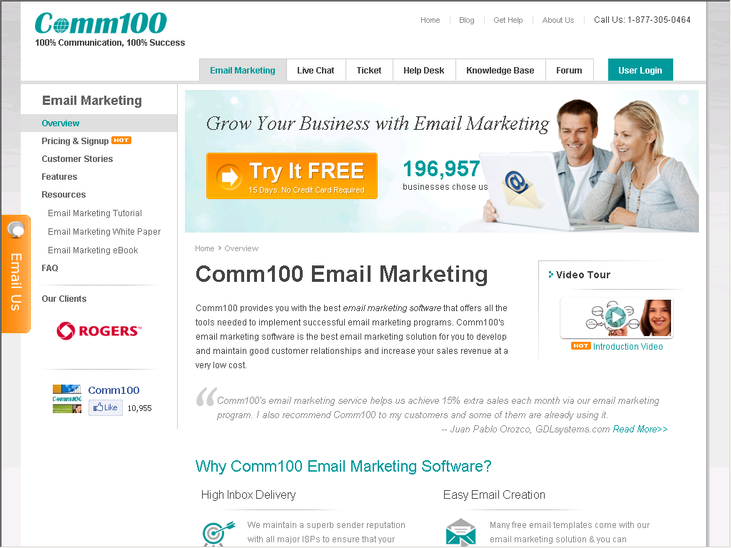 Comm100 Email Marketing software can help you maintain and develop good relationships with your customers and increase your sales at a very low cost. Comm100 Email Marketing provides many professional and free email/newsletter templates to you. You can also customize the your own email templates with your own logo and images; no technical skills required. It also provides robust list management features, such as grow mailing lists by importing your existing contacts, or collecting new leads from your website. You can easily manage and clean your mailing lists. Comm100 Email Marketing also provides kinds of professional reports. You can see who opens your emails, who clicks on which links with the best email marketing software, by tracking your email marketing program with insightful reports.